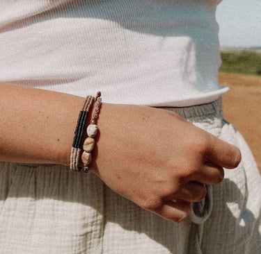 Ich bin Celina und knüpfe Schmuckstücke, die von Hand und von Herzen entstehen – oft auf der Couch, im Garten oder am Meer. Erfahre hier mehr über mich und meine kreative Reise.